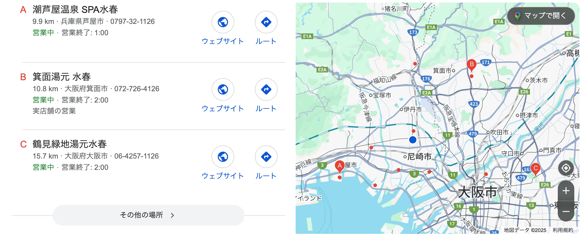 水春でスーパー銭湯を検索を行うと関西では3つ出てきます。