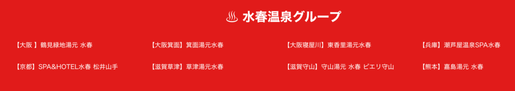 ただ、ホームページを確認して見ると、ホテル&スパや滋賀県にも施設あるようで合計で8つも水春グループとして運営しているようです。