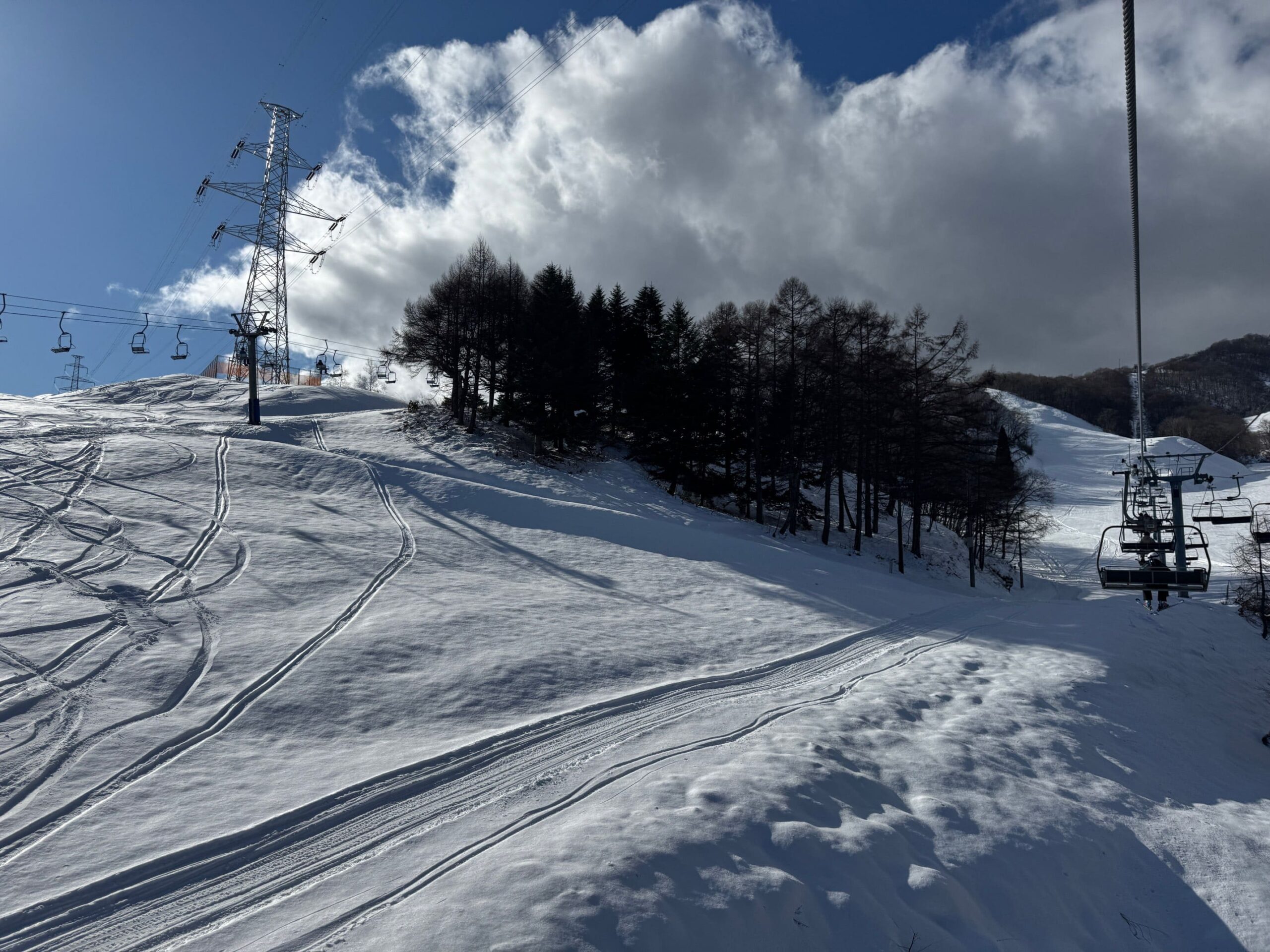 全員が同じコースを滑るため、自信のない方は、ペアリフトで下段のコースからを滑るか、もう少し積雪が深くなるのを待って、コースがもっと開放されてから来られると林間コースなどなだらかなコースもオープンして気持ちよく滑れるかもしれません。