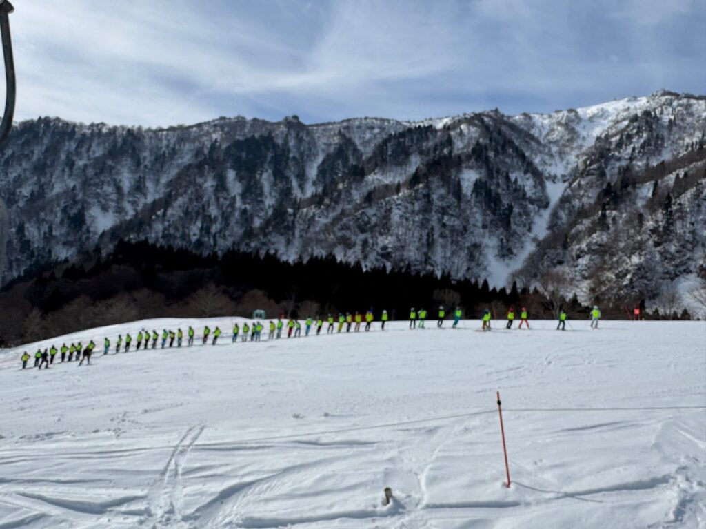 まずは、検定バーンに規制線が張られて、受講生全員によるデラ掛けが行われました。
