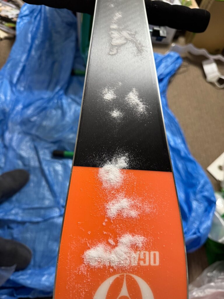 これまで、ロシュノールやサロモンなど何台かワクシングをしてきましたが、このオガサカの滑走面は群を抜いて美しい仕上がりでした。