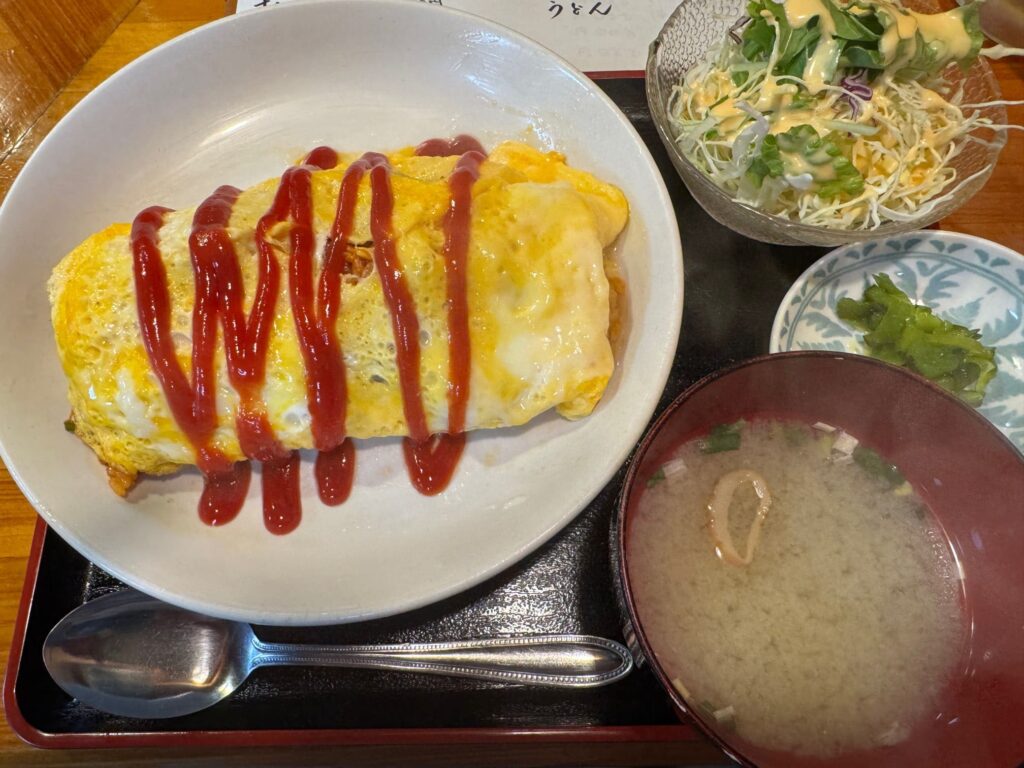 この中で、私はオムライス定食を注文することに。