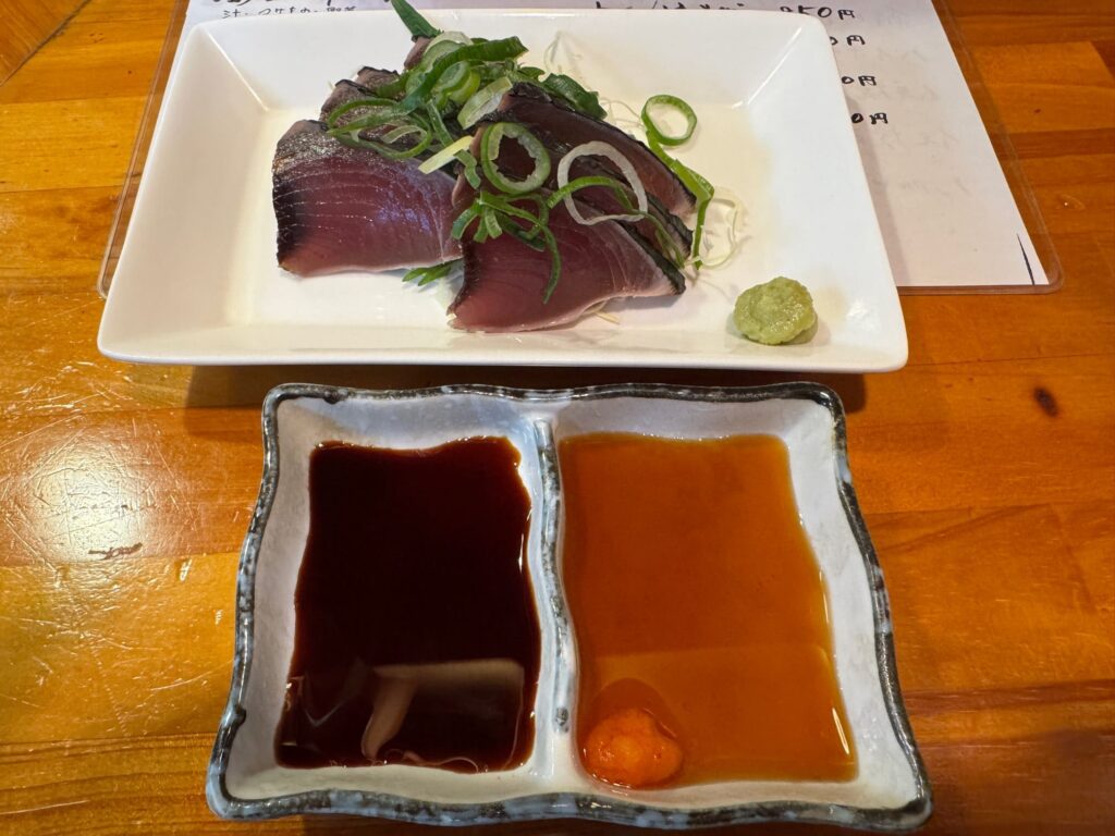 それができるまでのつまみとしてカツオのたたきを注文しました。