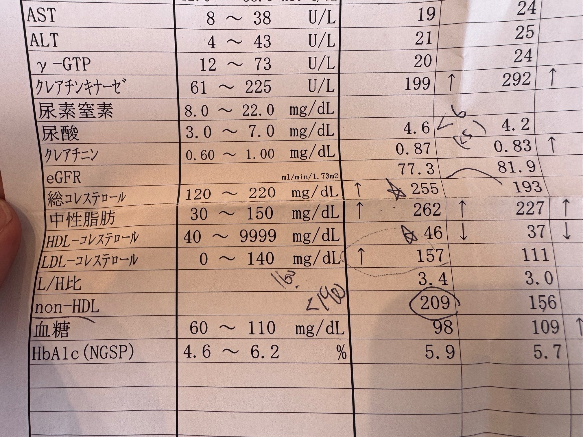 元々、中性脂肪の数値が高い傾向にあったのですが、コレステロールの値が前回検査の数字よりも増えていました。