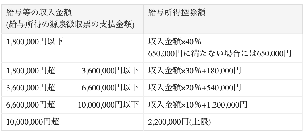 令和2年の速算表で計算すると、157万円の年収があった場合は52万8,000円なので、当時は給与所得控除の金額が少なかったと言えます。