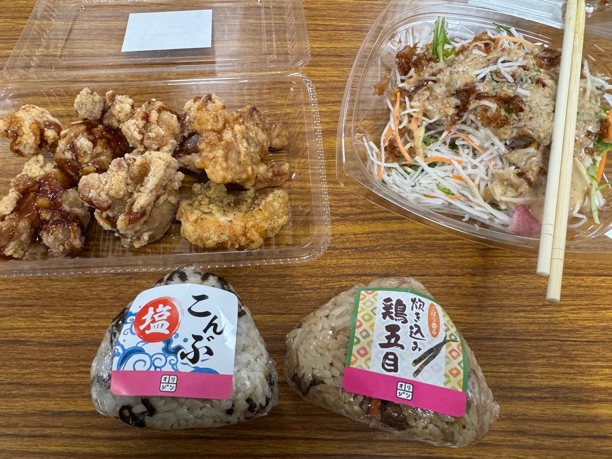 この唐揚げをおかずに、ボリューム満点のおにぎりと、サクサク食感のじゃこの乗ったサラダを食べて午後からも確定申告作業を頑張ることができました。